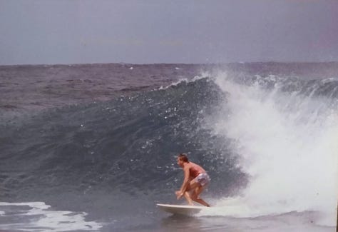 I stayed at the free mansion for another month and got tired of being broke and decided that I would return back to Florida, thinking I might settle down and get that career I had postponed 4 years earlier. I saved and went back to Florida via a Mexico surf trip by bus. After a month at home, I wrote a postcard to Midori. She called and that turned into a daily routine, waking up to her phone calls. She invited me to visit her in Japan. I again saved barely enough and went to Japan. Midori’s Dad gave me a job painting. We fell in love and went back to Hawaii together where we were married in 1987. I became a scuba instructor, lived with Midori on Oahu for another nine years and still continued to surf, alone. Jon was almost constantly gone and then moved to Molokai and Kauai to live in his van and windsurf. Dan had saved enough money to surf and travel, coming back when he had run out of cash to work again for the next trip. Steve completely disappeared from my life in the islands. We had been inseparable only a year before and he was gone. Although invited to our wedding, he never showed up. I wish I could have told him how special he was to me and the incredible impact he had on my life. I saw him one last time, many years later in Florida and the conversation had turned weirdly forced and Steve seemed uncomfortable, there was a distance now that we both felt. After maybe about a half an hour, we shook hands and hugged. He turned and walked forever out of my life, now tinged a bit with gray hair around his temples. Although he lived only a short ten minute drive away from where Midori and I were back in Orlando with our young daughter, I never saw him again.
