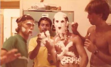 Today I live walking distance to the beach here in Florida. I can hear the waves from my house and when it sounds like I might be able to go for a surf, I will go down to watch the sunrise, sitting on the sand with my coffee in hand. There in the surf, they are always there with me. In the shadows of memory, I see their phantom shapes out playing in the surf. Sometimes when nobody is around I get overwhelmed thinking about them and let tears fall, wishing I could be with them just one last time. Missing them. I yell their names into the salt mist they loved. “TURTLE!! Shakka Brah! HOBITCH!! I see you there!! MAYNARD! My brother! I love you man! WATTS! Aloha my bradda! GALLUCH! You crazy sons of bitches! We DID It!” “Ken and Pat. Thank you! Thank you! Thank you!! Julie, Anita, Katie. My sweet hearted friends. Starchitect, X- Brah, I MISS YOU ALL!”
